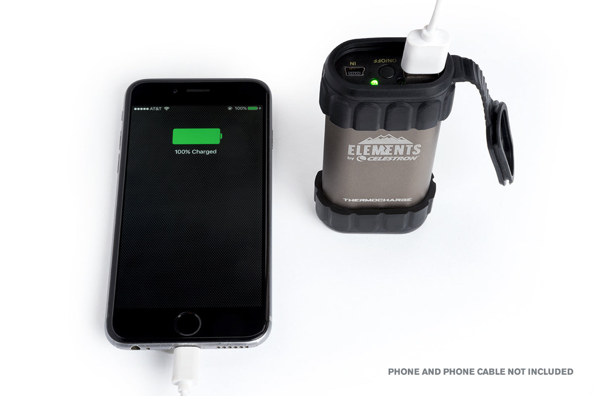 ThermoCharge delivers a full charge most smart phones, MP3 players, cameras and many other USB-powered devices.