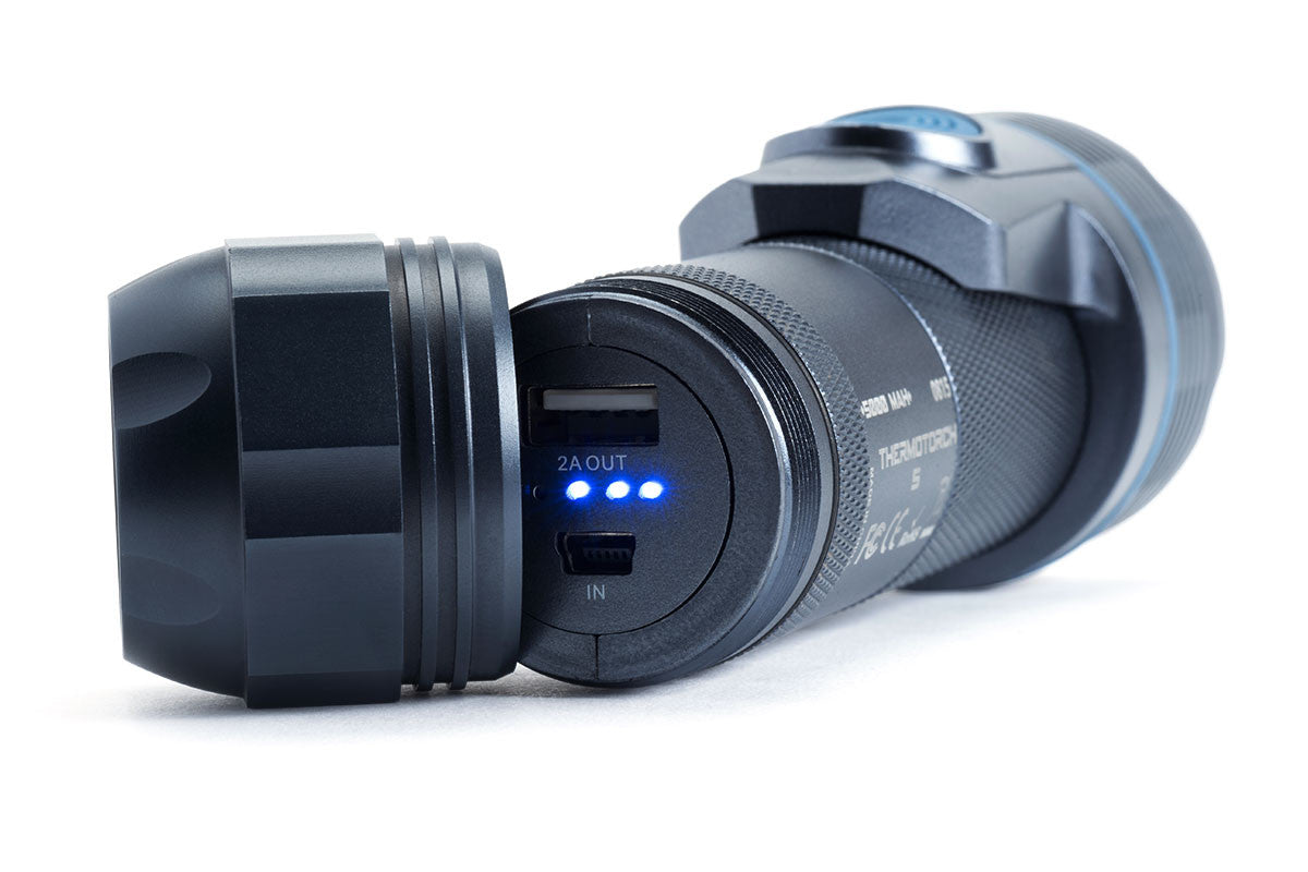The ThermoTorch 5 is a rugged, 3-in-1 tool featuring a true tactical 3 mode flashlight, a hand warmer and a portable power bank for your personal electronics. Whether you’re stargazing under clear desert skies or perched in a forested hunting blind on a gray and rain soaked afternoon, the ThermoTorch 5 will provide, heat, light and power to keep you going.