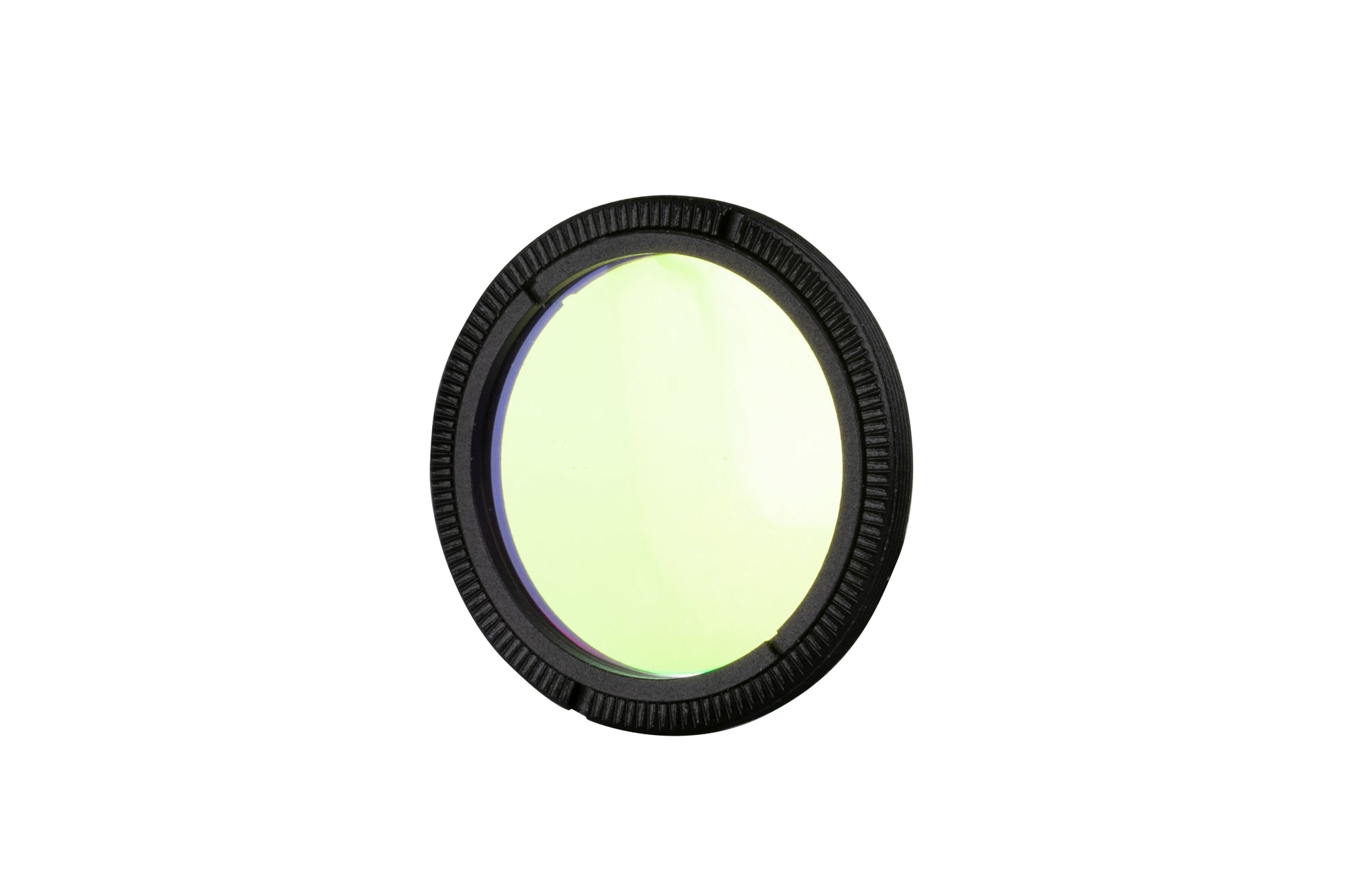 The filter is machined aluminum black anodized cell with knurled rim for easy grip during installation. An anti-reflection coating has been added to the filter to help suppress reflections on the glass. The filter fits directly into the internal filter mount in the RASA 8’s front lens cell, where the optical window normally mounts. By removing the clear window and replacing it with the filter, optical performance for the entire system is maintained. No other adapter is needed.