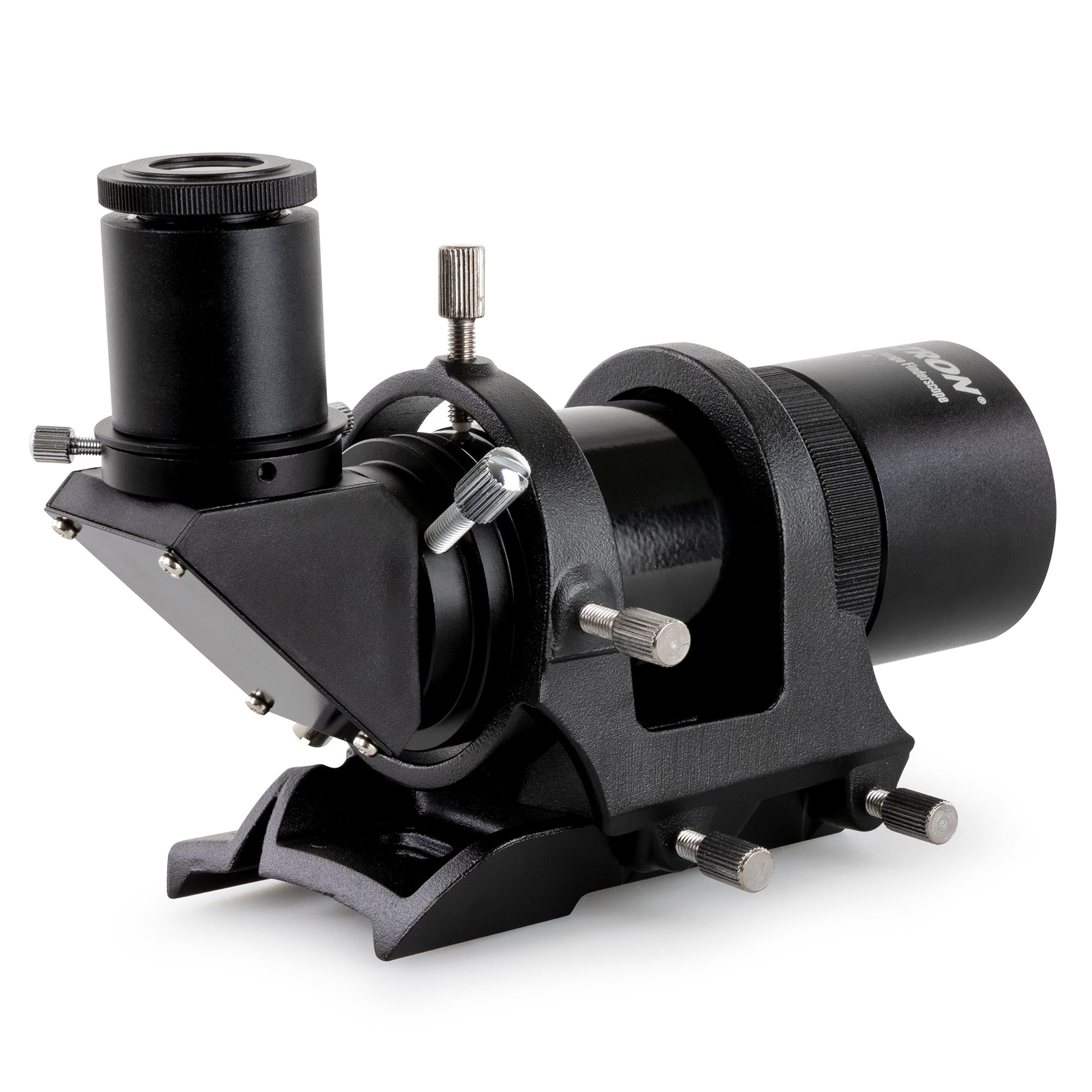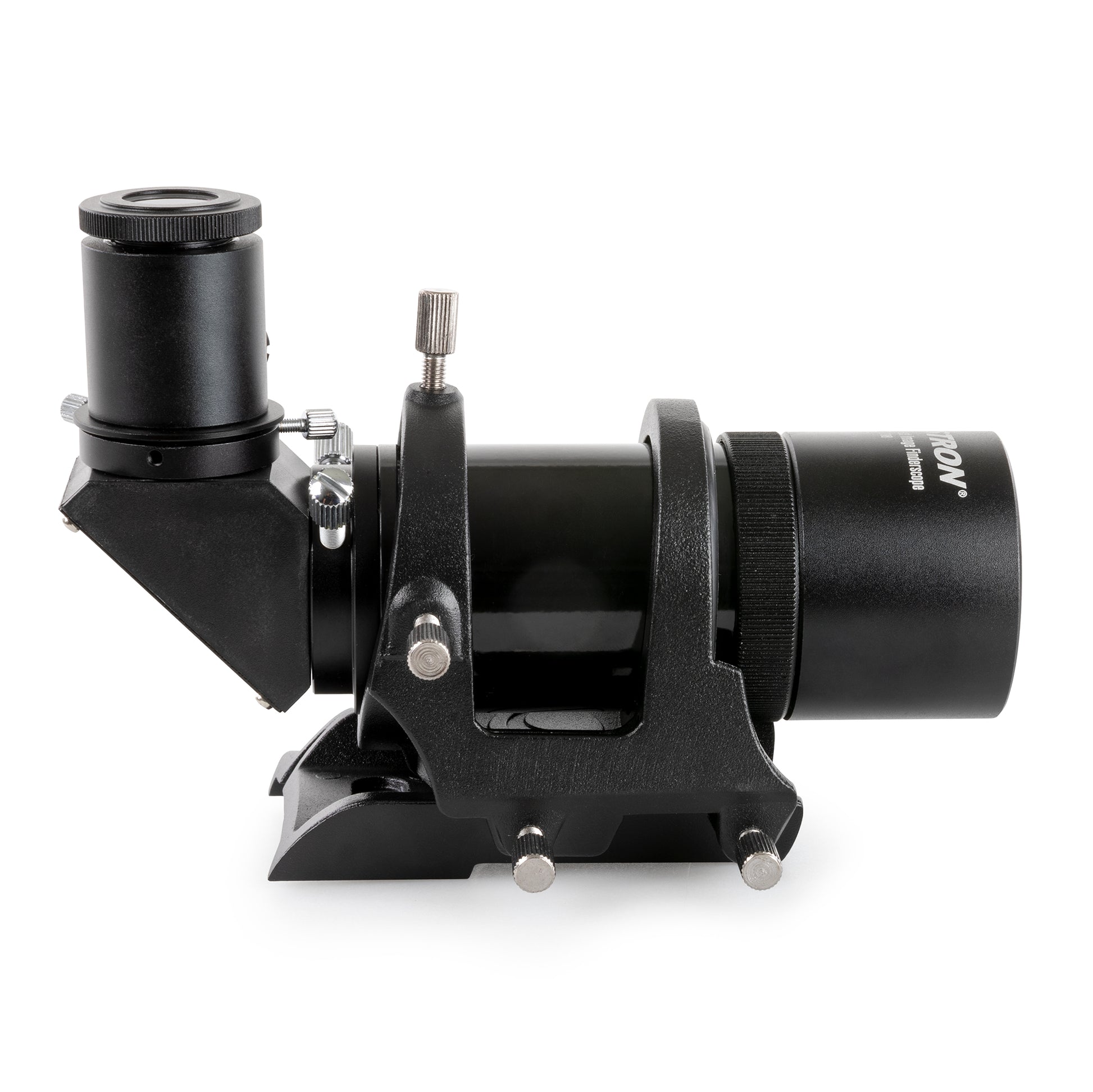 The Celestron 9x50 Right Angle Correct Image (RACI) Finder is a great upgrade to the standard finderscopes included with many Schmidt-Cassegrain telescopes. The generous 50mm aperture produces bright, sharp images with a magnification of 9x and a five-degree apparent field of view. Meanwhile, the right-angle, correct-image design keeps objects right-side-up and correctly oriented left-to-right, making it easier to find objects and track them as they drift through the field of view. You can rotate the eyepiece module left or right to find the perfect viewing angle based on your setup.