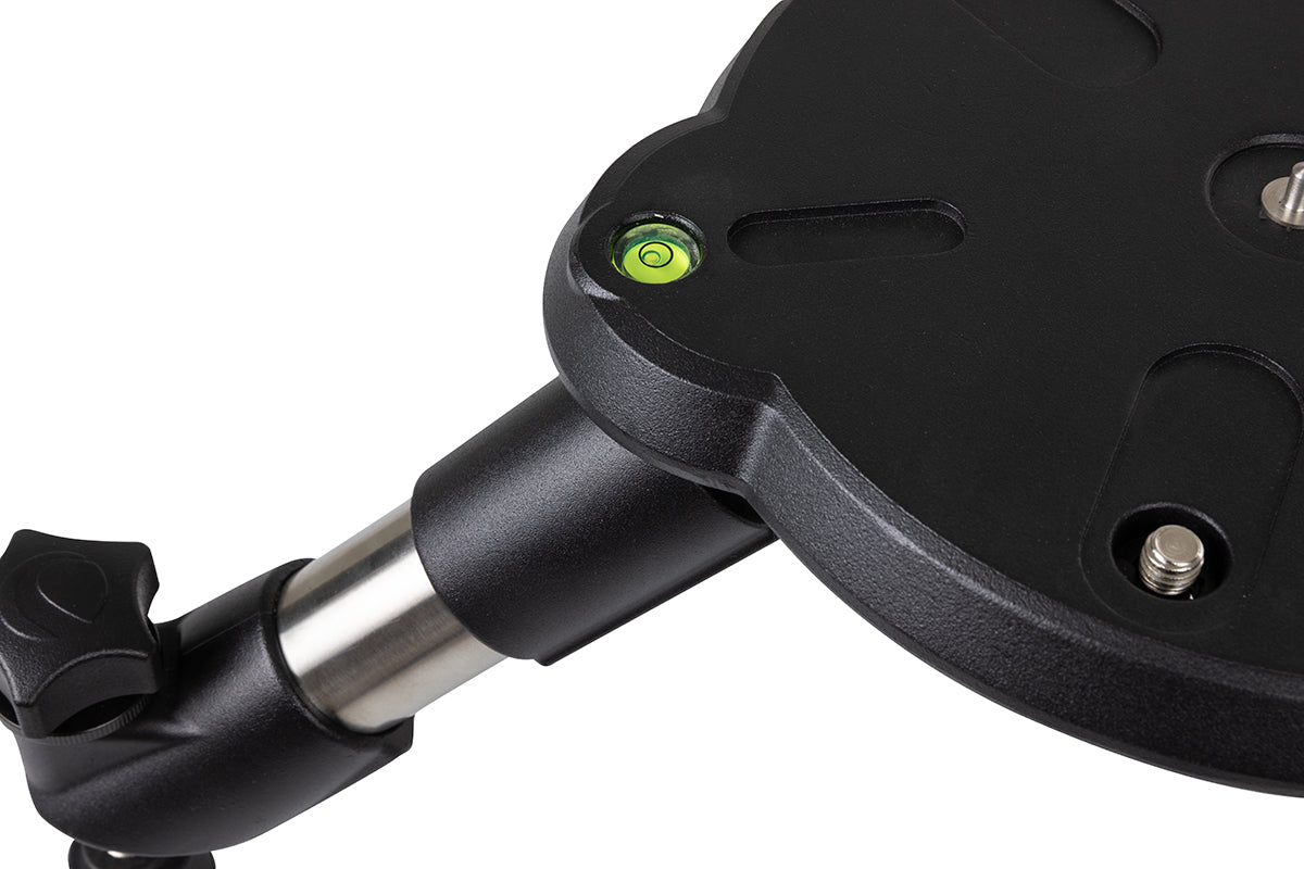 The Tabletop Tripod has adjustable knobs on each leg and a bubble leveler on the mount plate to ensure your setup is level before adding the telescope. Just like the NexStar SE, NexStar Evolution, and Celestron Origin’s standard tripod, the Tabletop Tripod has three captured screws on the underside of the mount plate so you can securely lock your mount and telescope in place.