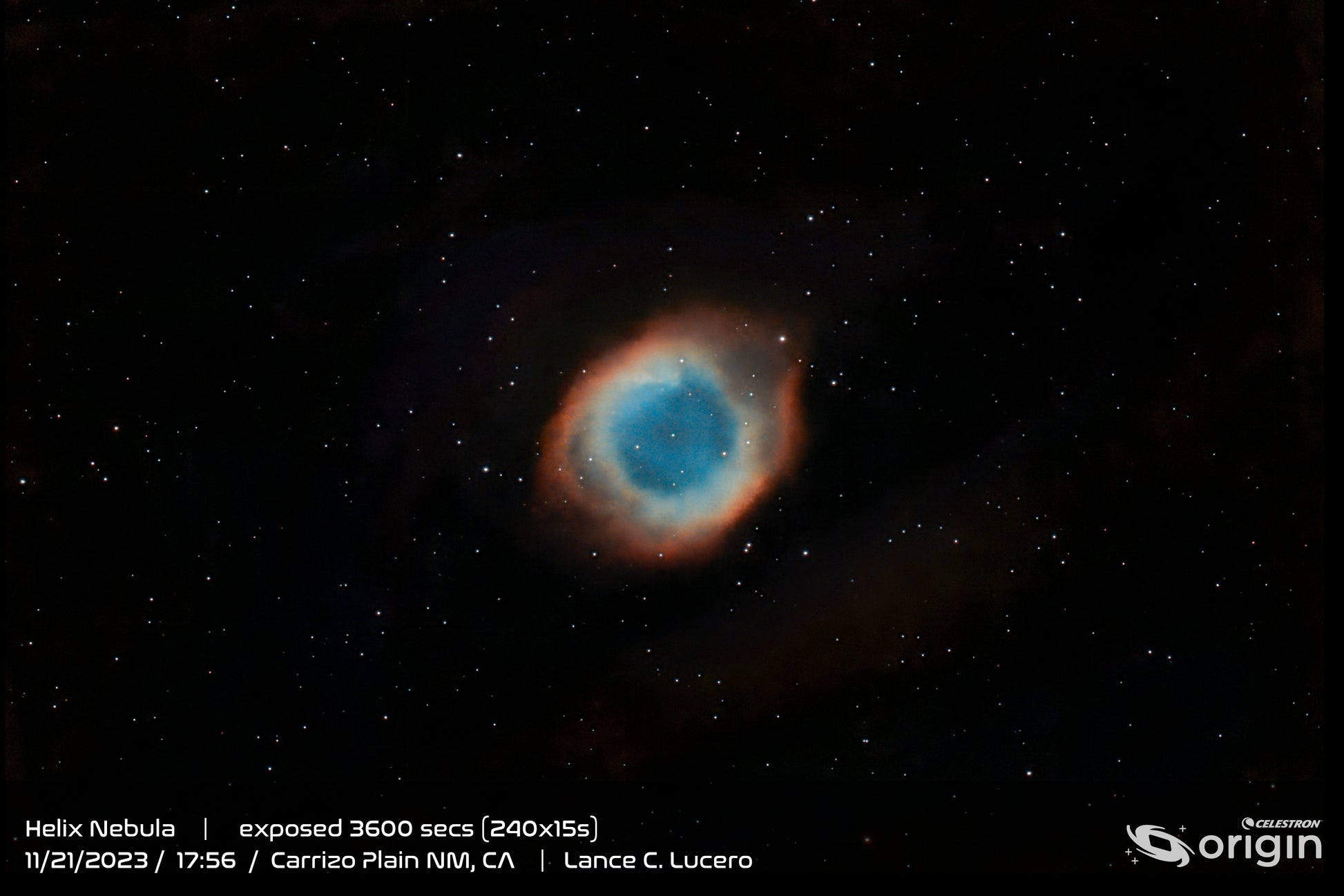 No, this is normal. The Nebula Filter blocks much of the incoming light, and some of the rejected light reflects back into the optical path. While most of this light exits through the Schmidt corrector, a small amount reflects back toward the sensor. This back-reflected light at the filter’s key wavelengths creates an out-of-focus star image superimposed on the focused star image, which is the halo. You may also notice that the camera cable can create a “shadow” within the halo, this is also normal. Origin’s fast optics and sensitive sensor can make these halos visible, especially during long exposures where bright stars significantly outshine the nebula.